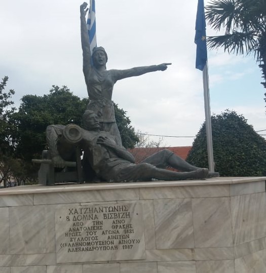 Το μνημείο που στέκει κοντά στον Φάρο της πλατείας στην Αλεξανδρούπολη είναι αφιερωμένο στην ηρωίδα Θρακιώτισσα  Δόμνα Βισβίζη και τον σύζυγό της Χατζηαντώνη Βισβίζη. Το αντρόγυνο μυήθηκε την Φιλική Εταιρία και πρόσφερε την περιουσία του στον Αγώνα για την Ανεξαρτησία του ελληνικού κράτους. Η Δόμνα Βισβίζη ήταν από τα πρόσωπα εκείνης της εποχής που είχε την εκτίμηση άλλων ηρώων όπως του Αλέξανδρου Υψηλάντη που στις επιστολές του την προσφωνούσε «Ευγενέστατη και Γενναιότατη». Το παράδοξο είναι ότι η ηρωίδα της Θράκης πέθανε εγκαταλελειμμένη, φτωχή και λησμονημένη. Παρόλο την τεράστια προφορά της στον Ελληνικό Αγώνα, η πολιτεία δεν την στήριξε όπως θα άρμοζε σε μια ηρωίδα.