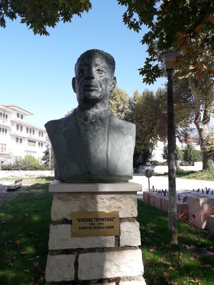 Η προτομή αναπαριστά την προτομή του Αρσένη Γεροντικού και είναι κατασκευασμένο από ορείχαλκο. Ο επονομαζόμενος ήταν καθηγητής γαλλικής γλώσσας. Τα αποκαλυπτήρια του αγάλματος έγιναν το 1972.