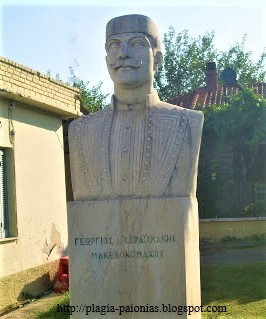 Αναπαρίσταται ο οπλαρχηγός Γεώργιος Καραϊσκάκης ο οποίος ήταν Μακεδονομάχος, όπως δηλώνει και η επιγραφή στη βάση της προτομής.