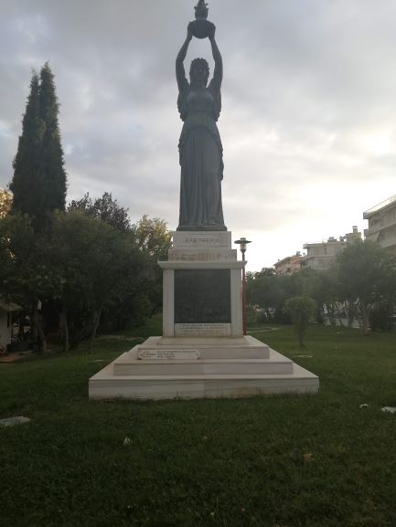 Τα αποκαλυπτήρια πραγματοποιήθηκαν στις 25 Οκτώβριου του 2013 παρουσία του τότε Δημάρχου Καλαμάτας και του Μητροπολίτη Μεσσηνίας Χρυσοστόμου, ο οποίος τέλεσε δέηση στη μνήμη των πεσόντων υπέρ Πίστεως και Πατρίδος. Το άγαλμα της Ελευθερίας, που αποτελεί μέρος της δωρεάς της Ιολάνδης Παπαδοπούλου – Rolhausen για τη μνήμη του άνδρα της, αποσκοπεί στο να αναδείξει την Καλαμάτα ως την πόλη της Ελευθερίας και ως την πόλη σύμβολο  του αγώνα του 1821.