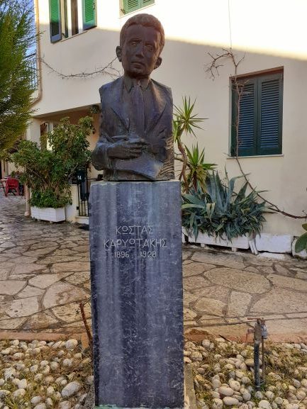 Για την κατασκευή της  προτομής του Κ.Καρυωτάκη έχει χρησιμοποιηθεί χαλκός και ο γλύπτης  έχει αποδώσει  στην  μορφή  του  ποιητή  όλα  τα  οικεία  σε  όλους χαρακτηριστικά  του: κλίση του κεφαλιού, ο κονδυλογράφος στο ένα του χέρι, το θλιμμένο ύφος.