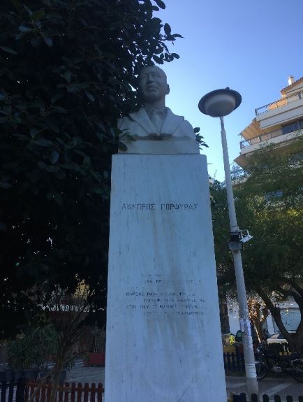 Στο πλαϊνό μέρος της βάσης της προτομής είναι χαραγμένο το όνομα του γλύπτη.
