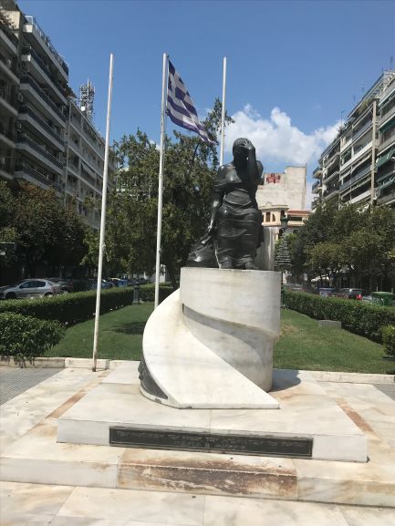 Υπάρχουν δύο γλυπτά με θέμα τους τον Ποντιακό Ελληνισμό στον Δήμο Θεσσαλονίκης και βρίσκονται και τα δύο στην πλατεία Αγίας Σοφίας απέναντι από τον ιερό ναό στον άξονα που χωρίζει την Ερμού.