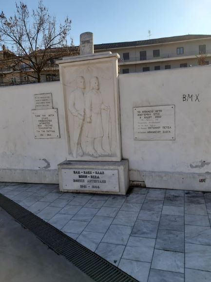 « ΤΟ ΜΝΗΜΕΙΟ ΑΥΤΟ ΑΝΕΓΕΡΘΗ ΣΤΙΣ 9 ΜΑΙΟΥ 2002 ΜΕ ΔΑΠΑΝΕΣ ΤΗΣ ΝΟΜΑΡΧΙΑΚΗΣ ΑΥΤΟΔΙΟΙΚΗΣΗΣ ΚΑΙ ΤΟΥ ΔΗΜΟΥ ΓΡΕΒΕΝΩΝ ΕΠΙ ΝΟΜΑΡΧΟΥ ΑΝΤΩΝΙΟΥ ΠΕΤΣΑ ΚΑΙ ΔΗΜΑΡΧΟΥ ΑΘΑΝΑΣΙΟΥ ΖΙΩΓΑ».