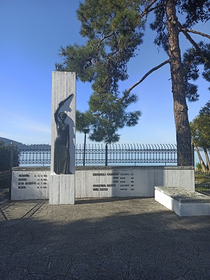 Πάνω σε μια στήλη υπάρχει ένα μεταλλικό ανάγλυφο το οποίο απεικονίζει μια γυναικεία μορφή. Τούτη η μορφή κρατά ένα υψωμένο σπαθί στο δεξί της χέρι. Σε έτερη στήλη η οποία βρίσκεται πίσω από την προηγούμενη, αναγράφονται τα λόγια: