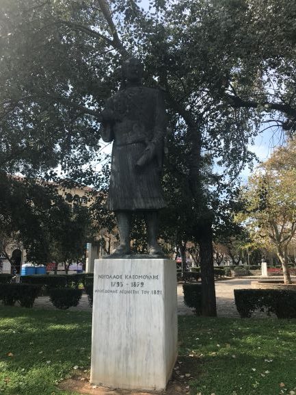 Το 1993 τοποθετήθηκε στην πλατεία ΧΑΝΘ ο ανδριάντας του Νικόλαου Κασομούλη ενός από τους σημαντικότερους αγωνιστές και ιστορικούς  της Ελληνικής Επανάστασης. Γιος εύπορων εμπόρων από την Φλώρινα, σε νεαρή ηλικία εγκαταστάθηκε στις Σέρρες για να επεκτείνει την οικογενειακή επιχείρηση. Εκεί στα 1820 μυήθηκε στη Φιλική Εταιρεία.  Το έργο είναι φτιαγμένο από μπρούντζο και τοποθετημένο σε μαρμάρινη βάση. Αναπαριστά τον Νικόλαο Κασομούλη με την παραδοσιακή του στολή.  Ο Κασομούλης  κρατά στο ένα χέρι έναν πάπυρο ενώ με το άλλο ακουμπά το όπλο που έχει περασμένο στο ζωνάρι του. Έχει στραμμένο το κεφάλι προς τα αριστερά και ανασηκωμένο ελαφρώς προς τα επάνω κοιτάζοντας τον ουρανό.