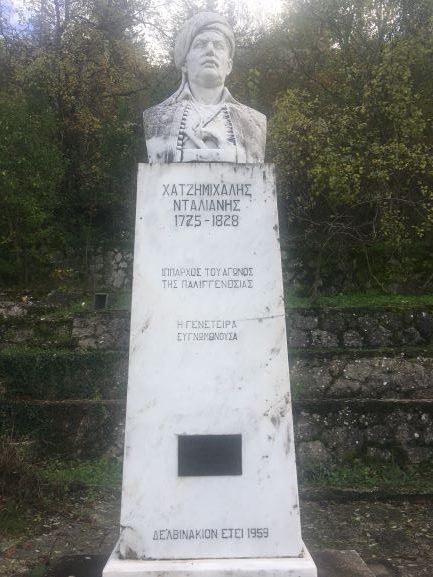 Το γλυπτό του Χατζημιχάλη Νταλιάνη αναπαριστά την προτομή του, κατασκευασμένη από μάρμαρο και τοποθετημένη σε μαρμάρινο βάθρο. Τα αποκαλυπτήρια πραγματοποιήθηκαν το 1959 στο Δελβινάκι Πωγωνίου. Ο καλλιτέχνης είναι ο Ανατόλης Λαζαρίδης. Εκτός από το όνομα του εικονιζόμενου, πάνω στο βάθρο της προτομής αναγράφεται: