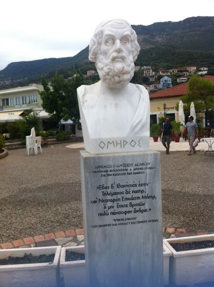 Η προτομή του Ομήρου βρίσκεται στην κεντρική πλατεία της Ιθάκης, στο Βαθύ.